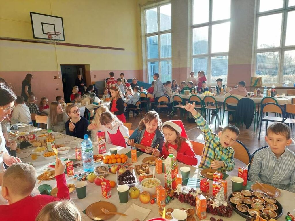 Wspólne kolędowanie – spotkanie wigilijne społeczności szkolnej.
