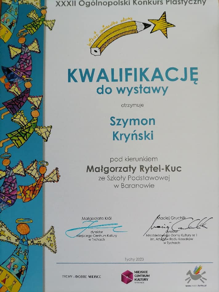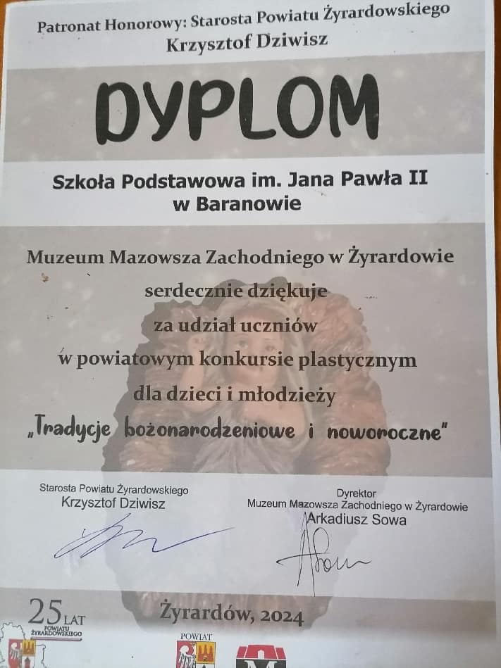 Konkursy plastyczne administrator2024-02-202024-02-20 Galeria prac uczniów Szkoły Podstawowej w Baranowie: Ogólnopolski Konkurs Plastyczny pt. ,,Witaj gwiazdko złota”. Powiatowy Konkurs Plastyczny pt. ,,Tradycje bożonarodzeniowe i noworoczne”