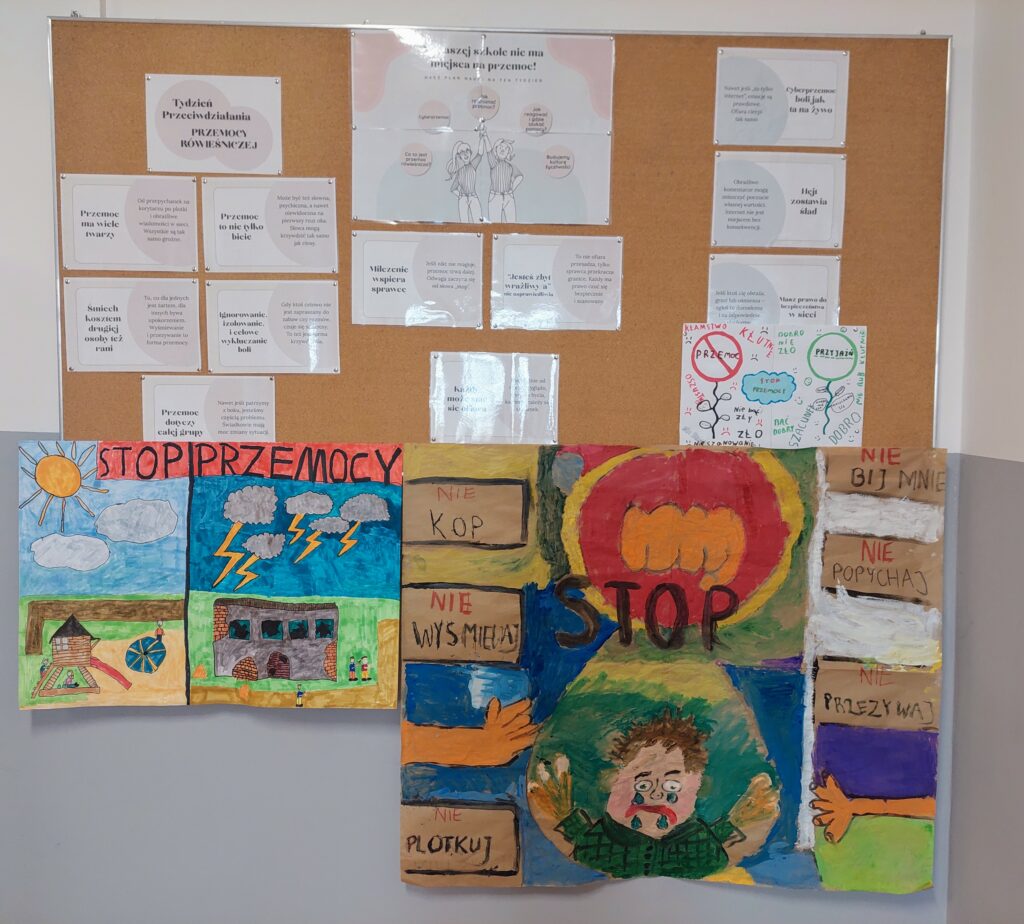 W ramach ostatniego wydarzenia Tygodnia Przeciwdziałania Przemocy Rówieśniczej cała społeczność szkolna włączyła się w akcję symboliczną – uczniowie, nauczyciele i pracownicy szkoły założyli czerwone elementy garderoby, wyrażając w ten sposób solidarność z osobami, które doświadczyły przemocy, oraz sprzeciw wobec wszelkich form agresji. Podczas wydarzenia uczniowie zaprezentowali również przygotowane plakaty pod hasłem „Kolorowy świat bez przemocy”, które promowały wartości tj. szacunek, empatia, przyjaźń, bezpieczeństwo. Dzięki wspólnym działaniom nasza szkoła po raz kolejny pokazała, że jest miejscem, w którym ważne są dobre relacje, zrozumienie i wzajemne wsparcie.