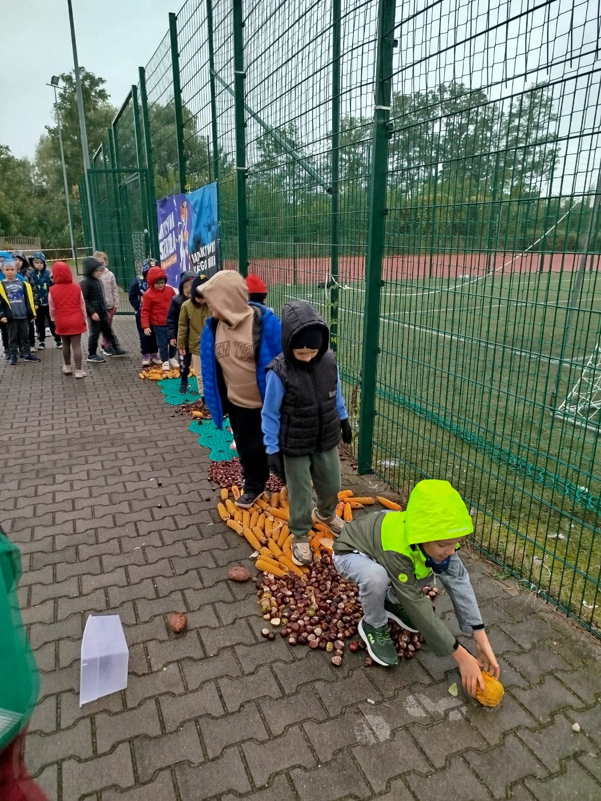 W środę 1.10.25 r  w naszej szkole odbyło się „Święto Pieczonego Ziemniaka”. To święto obchodzimy już od wielu lat. Kontynuujemy w ten sposób ludowe tradycje. Odbyło się wiele „ziemniaczanych” zabawy i konkursów. Podczas ziemniaczanych konkursów towarzyszyła nam kartoflana muzyka. Uczniowie bawili się ziemniaczanymi stemplami oraz przechodzili ciekawą ścieżką ekologiczną. Pogoda dopisywała, apetyty także. Na początku przypomnieliśmy sobie historię ziemniaka oraz  Ziemniaczany Quiz. Wspaniałą konkurencją dla dzieci było wykonanie „Ziemniaka Cudaka”, pomysłowości w pracach nie brakowało.
