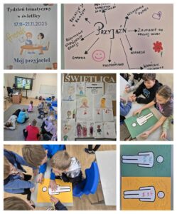Tydzień Przyjaźni & Dzień Życzliwości W świetlicy promowaliśmy dobre słowa, pomocną dłoń i uśmiech. Uczniowie brali udział w rozmowach, zabawach i działaniach, które wzmacniały pozytywne relacje i budowały życzliwą atmosferę.