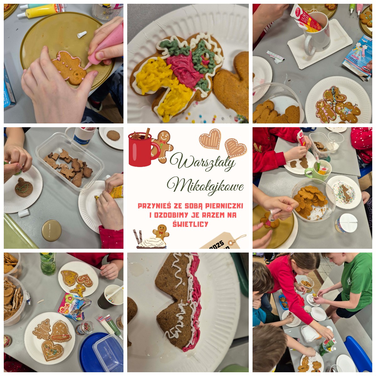 Zwieńczeniem grudniowych wydarzeń były warsztaty mikołajkowe z dekorowania pierników. Uczniowie z ogromnym zaangażowaniem i uśmiechem ozdabiali świąteczne wypieki, tworząc prawdziwe małe dzieła sztuki – a przy tym świetnie się bawili.